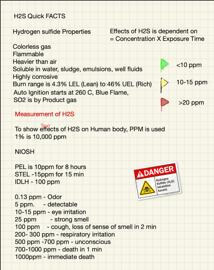 H2S is common accuring gas in drilling operations and in confined spaces. Measurement of H2S and O2 is needed before confined space Entry. One Breath is enough to kill entrants.